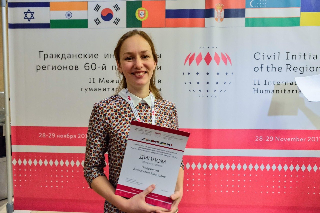 Являясь представителем НКО, преподаватель кафедры Анастасия Андриенко вошла в команду Сургута и Белоярского района «Черная кошка», которая стала победителем первого окружного кейс-чемпионата. В турнире участвовали 10 команд из муниципальных образований округа. В каждой из них за победу боролись представители некоммерческих организаций и органов местного самоуправления.
