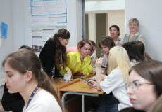 1 апреля текущего года в СурГУ высадился профориентационный десант с учащимися общеобразовательных учреждений города Сургута и студентами направления лингвистики СурГУ для участия в мероприятии «Что, где, когда?», посвященного 80-летию победы в Великой отечественной войне.