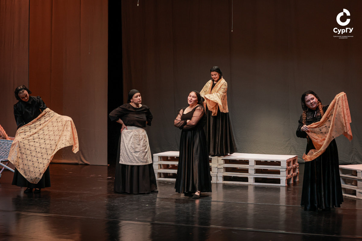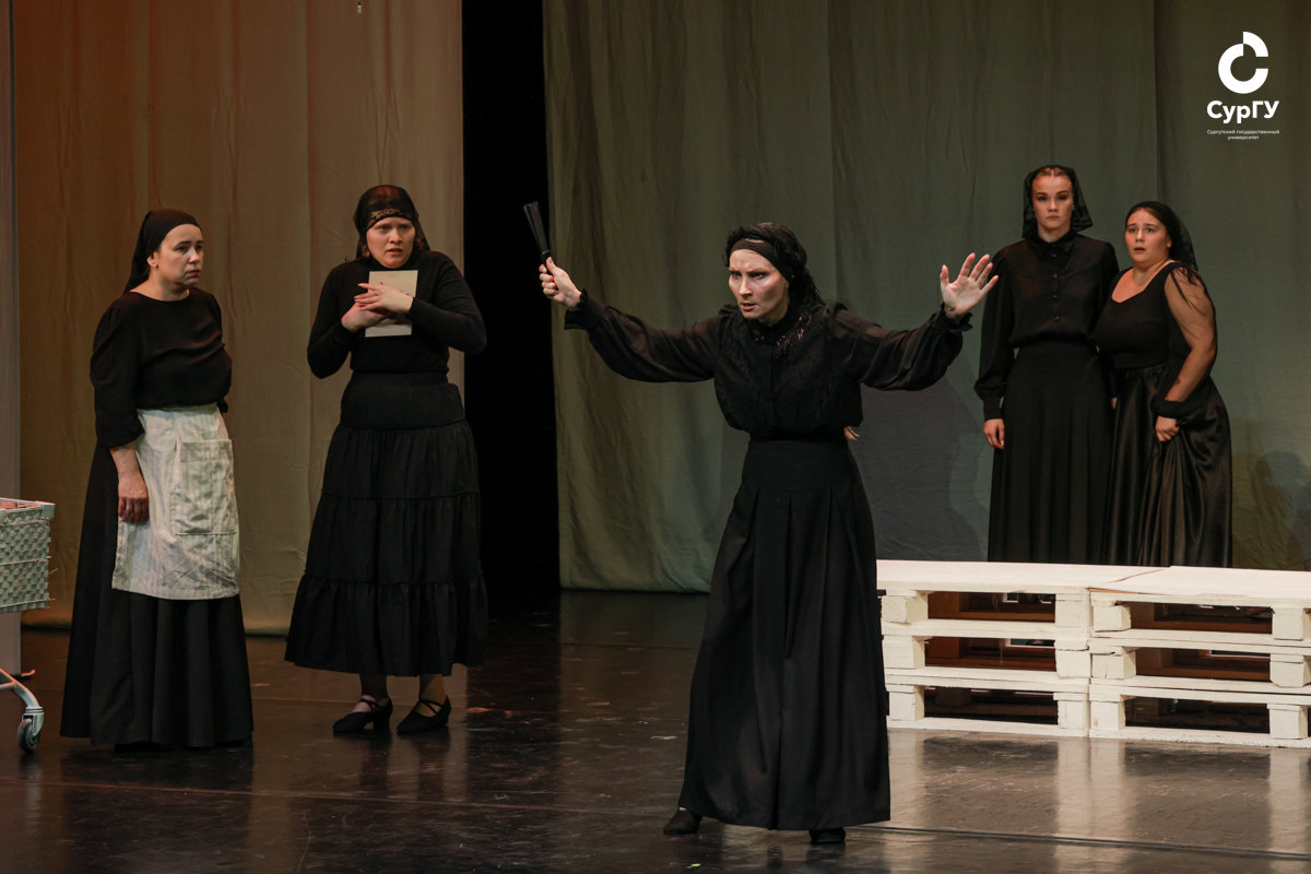 Студенты группы 211-11 направления «народная художественная культура» на сцене Театра СурГУ представили дипломный спектакль – постановку по пьесе «Дом Бернарды Альбы», написанной в 1936 году испанским драматургом Федерико Гарсиа Лоркой. Показ состоялся 1 июля.