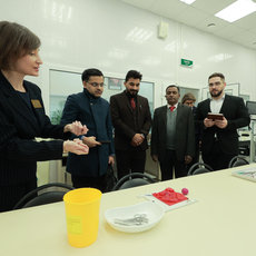 В ходе визита ректор СурГУ Сергей Косенок провел деловую встречу с делегатами. После общения с ректором Министр образования Посольства Индии Винай Кумар и директор компании «MediCare Global Education» Джитендра Кумар встретились с иностранными студентами Медицинского института. Для гостей крупнейшего вуза Югры также провели экскурсию в Симуляционно-тренинговый аккредитационный центр СурГУ, где студенты-медики отрабатывают свои профессиональные навыки перед допуском к клинической практике. Гости посетили студенческие общежития и Окружной кардиологический диспансер «Центр диагностики и сердечно-сосудистой хирургии» – клиническую базу Мединститута СурГУ.