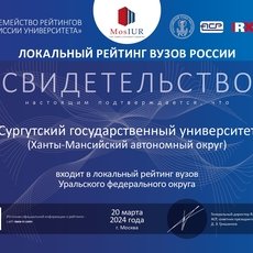 Сургутский государственный университет в региональном рейтинге RAEX по Уральскому федеральному округу в этом году занял третье место, поднявшись на одну позицию по сравнению с 2023 годом. Крупнейший вуз Югры уступает только Челябинскому государственному университету и Техническому университету УГМК (Свердловская область). Согласно данным, приведенным на сайте рейтингового агентства, по критериям «Образование» и «Наука» СурГУ занимает ранг 2, по параметру «Общество» – ранг 8. Вес каждого из критериев в итоговой оценке составляет 45, 25 и 30 % соответственно.