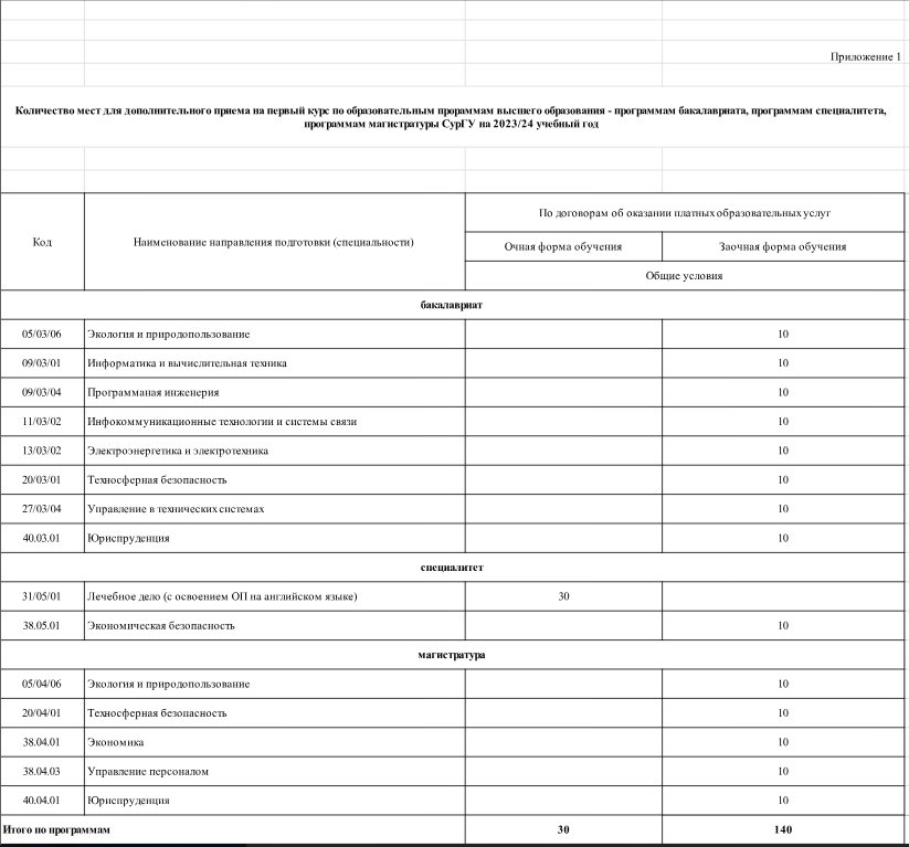 Дополнительный прием в СурГУ