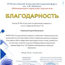 Это далеко не весь перечень мероприятий форума, в которых приняли участие представители СурГУ. По итогам защиты инновационный проект аспирантки СурГУ Елены Богдан занял 1-е место (научный руководитель — Оксана Чуланова). Во Всероссийском конкурсе «Лучший научный труд по управлению персоналом» дипломом 3-й степени награждена Оксана Чуланова за монографию «Современные технологии кадрового менеджмента».
