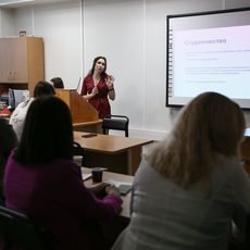 О сущности языковых игр (по Людвигу Витгенштейну) как форм жизни рассказала Марина Сыскова из Уральского гуманитарного института УрФУ. Людвиг Витгенштейн допускает бесконечное множество языковых игр, поэтому четкого их определения дать невозможно – но можно выделить их ряд общих признаков. Языковые игры не мыслятся вне социальной практики, имеют правила, по которым они действуют; они целостны и полны сами по себе, а также динамичны. Марина Дмитриевна подчеркнула, анализируя Витгенштейна, что языковые игры являются частным случаем форм жизни. Форма жизни воспринимается как социокультурный контекст, в котором языковые игры имеют смысл.