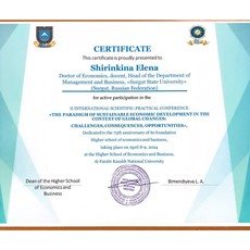 Доктор экономических наук, доцент, заведующий кафедрой менеджмента и бизнеса Сургутского государственного университета Елена Ширинкина выступила на первой секции конференции, посвященной трансформации бизнес-технологий в контексте устойчивого развития с докладом на тему: «Оценка факторов и их значимости, влияющих на индекс цифровизации предприятий.