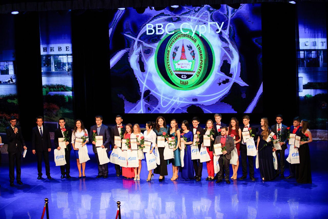На затемненной сцене 20 студентов руками в белых перчатках «пишут» слова: спорт, искусство, волонтер, наука… Словом, ребята писали название номинаций. Их было девять: «Доска почета», «Чемпионы», «Ученье — свет», «Творцы будущего», «Самые активные», «Сильные духом», «Звезды СурГУ», «Наставники СурГУ» и, наконец, «Лучшие из лучших». По красной ковровой дорожке, подобно голливудским кинозвездам, прошлись лучшие студенты: самые умные, самые упорные, самые талантливые, самые отзывчивые. Одним словом — самые-самые!