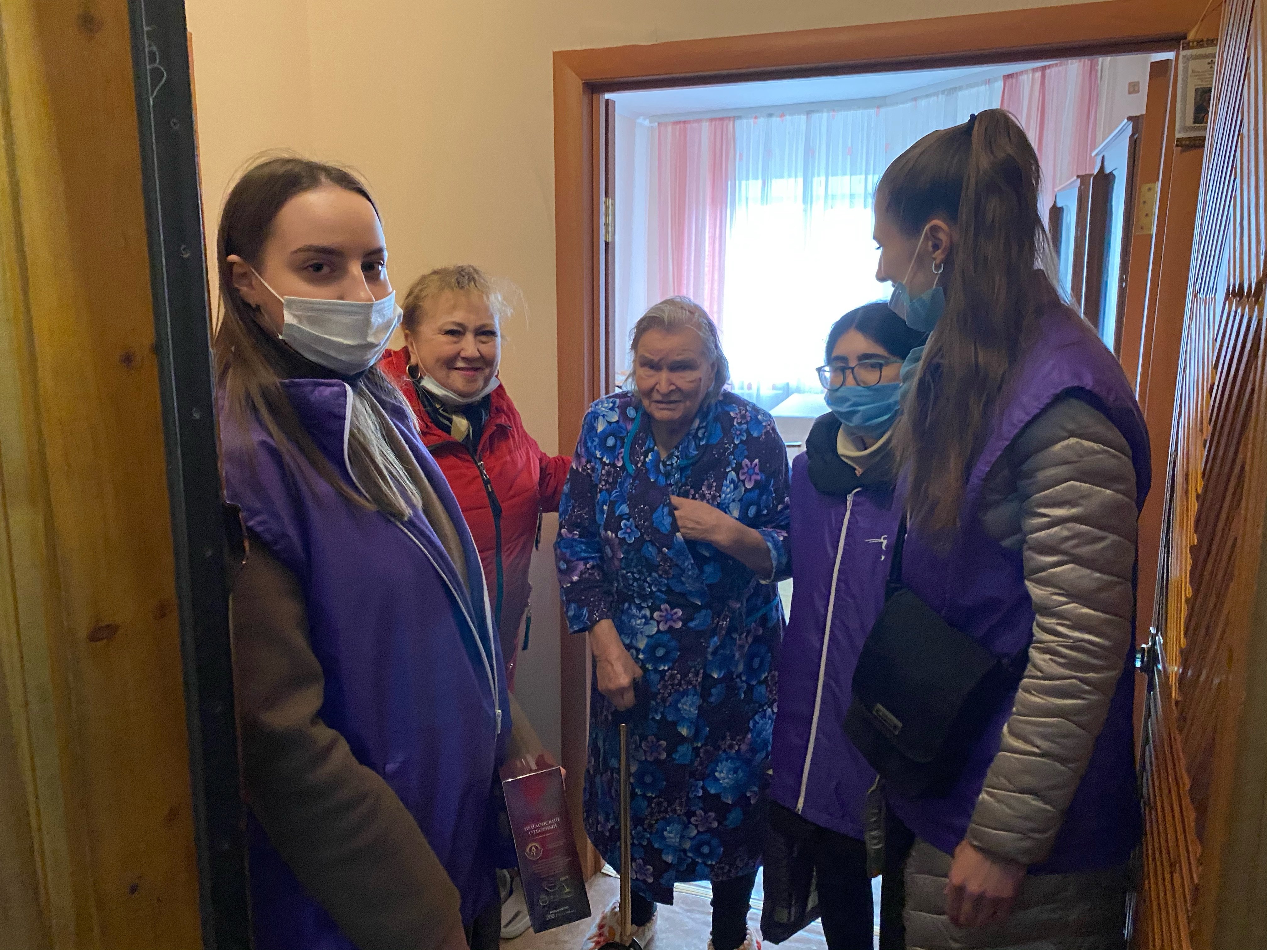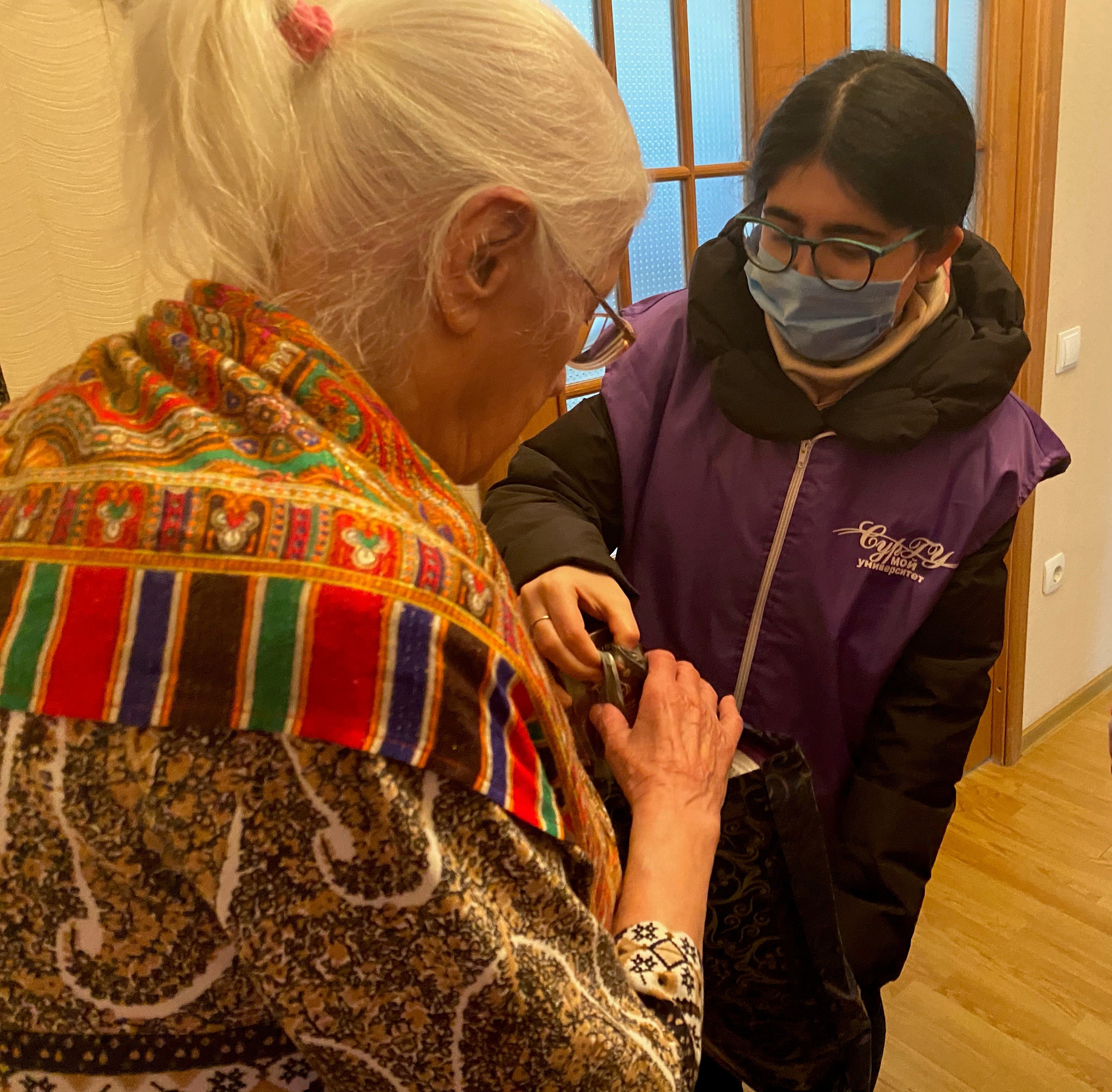 В рамках дистанционного проекта «Добро спасет мир» прошла очередная акция «СПАСИБО ВЕТЕРАНАМ», посвященная 76-летию Победы. Студенты-волонтеры направления «Лингвистика» ИГОиС СурГУ под руководством преподавателей кафедры лингвистики и переводоведения доцента Таджибовой Аксаны, доцента Коптяковой Елены, старшего преподавателя Завьяловой Юлии, куратора Сало Виктории, доцента Яковец Татьяны и при содействии председателя совета ветеранов города Сургута Светланы Михайловны Иост с 1 по 5 мая текущего года навестили и поздравили 16 ветеранов Великой Отечественной войны, тружеников тыла, вдов ветеранов ВОВ с замечательными весенними праздниками. Благодаря гранту губернатора Н. В. Комаровой волонтеры приобрели и подарили постельные принадлежности и продуктовый набор.