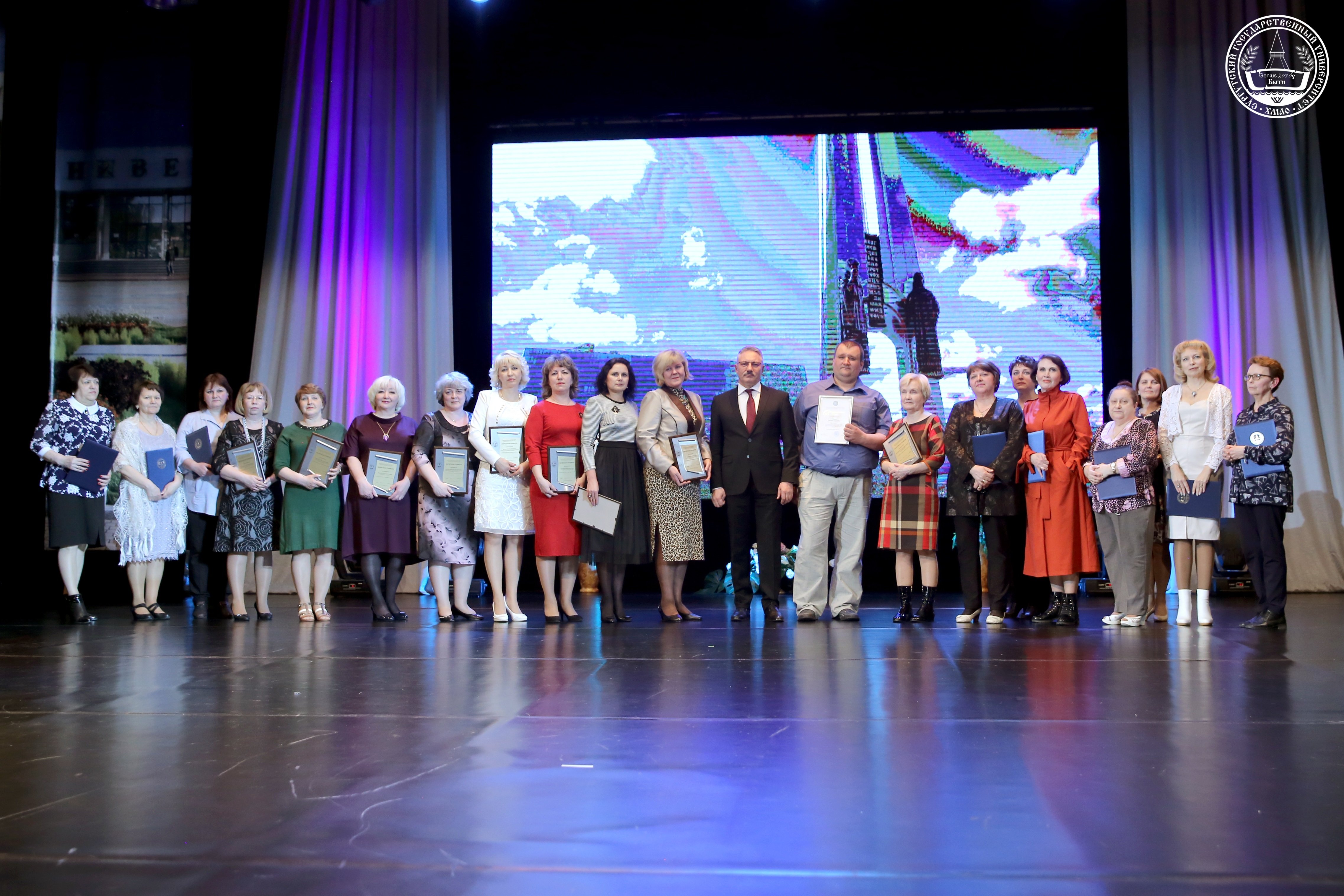 В этот праздничный вечер благодарственными письмами и почетными грамотами были отмечены сотрудники Научной библиотеки, театра и рабочий персонал. А преподаватели и сотрудники, чей стаж работы в стенах СурГУ 20 и более лет, были удостоены сертификатов на получение памятных юбилейных медалей.