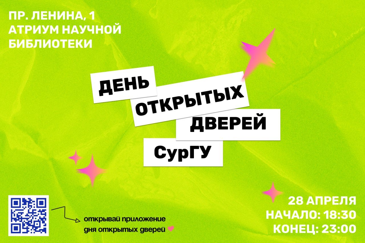 В пятницу, 28 апреля, с 18:30 до 23:00 школьники, родители, студенты колледжей и все желающие смогут поучаствовать в пижамной научно-развлекательной вечеринке «Ночь в университете» на пяти площадках: «Образование», «Спорт», «Развлечения», «Сообщества», «Лаборатория добрых дел». Регистрация в приложении «Абитуриент СурГУ» позволит посетить все активности и посоревноваться за баллы.