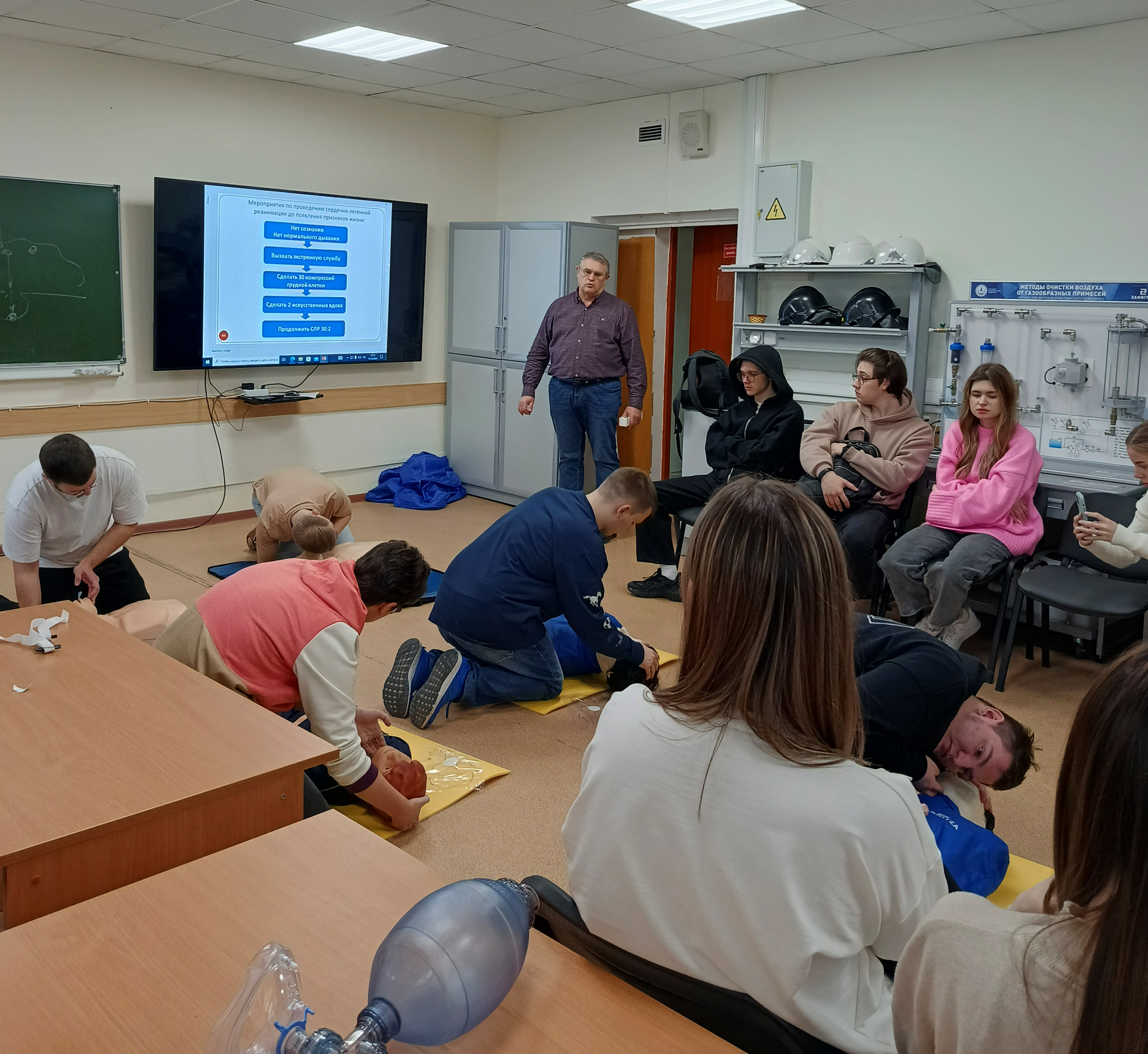 Были проведены практические занятия, на которых каждый из присутствующих смог отработать полученные навыки на манекенах и в симуляциях.