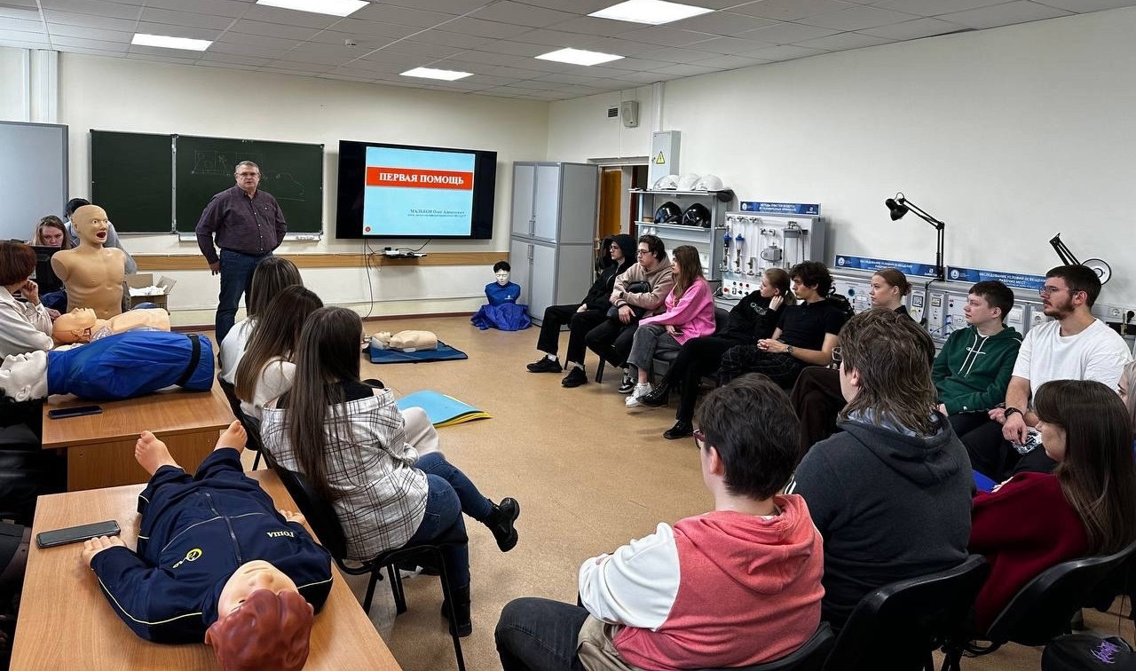 Студенты и магистранты кафедры безопасности жизнедеятельности на мастер-классе по оказанию первой помощи